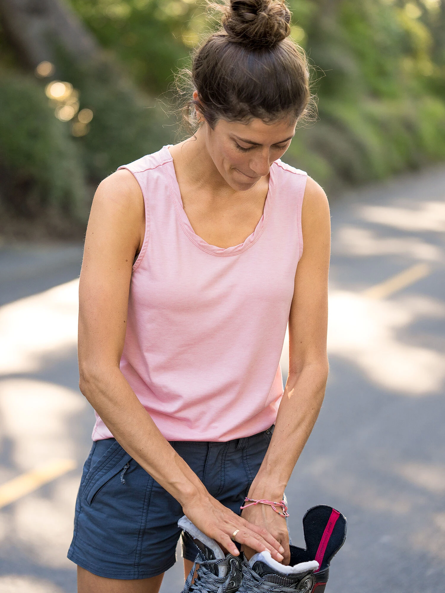 When we get the call to be ready in five, we pack the Wanderer. This tank is a top notch touring companion: sweat-wicking, super-soft, and shakes out wrinkle free over and over again. Bra-friendly. Roped neckline. By Title Nine. XS(2), S(4-6), M(8-10), L(12-14), XL(16).