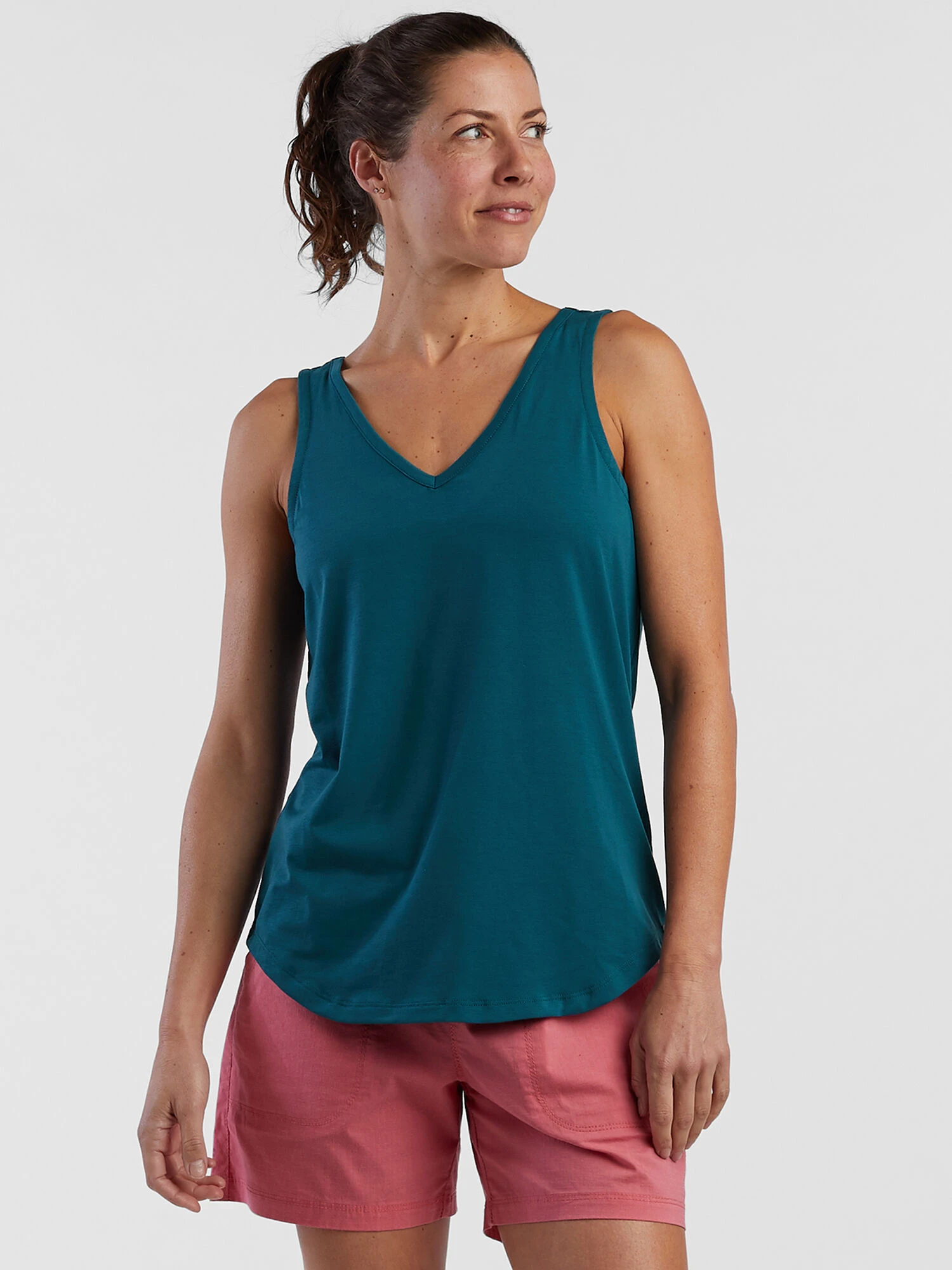 The only thing we want to wear when the heat’s over 100°F and humidity reaches 112%. This moisture-wicking tank top slips on like a whisper, drapes like silk, breathes, and dries 4x better than cotton. Open cross-back styling helps catch welcome breezes. Made of WickID™, our travel-ready, fast-drying, odor-shirking, hot weather savior. V-neck. By Title Nine. XS(2), S(4-6), M(8-10), L(12-14), XL(16).